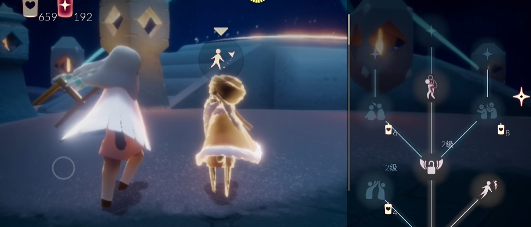 最终到达雪隐峰时飞过灯塔后继续朝太阳方向前进,会看到一片凸出的小山头,降落到山头上方即可触发动画提示成功抵达目标位置,这条直飞路线能在短时间内从霞谷大厅直达雪隐峰。日常任务经常要求在这里冥想或收集烛火,掌握直飞技巧后可以高效完成季节任务或景点打卡,无需乘坐缆车或船只但需要熟练掌握飞行转向和加速技巧。
